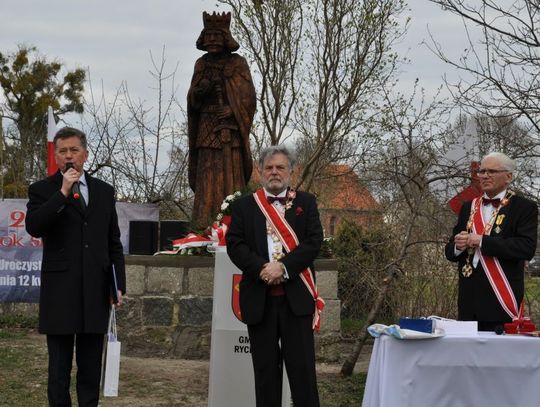 Dodajmy, że Medal Św. Wojciecha wręczył ks. proboszcz Piotr Łatacz pani poseł RP Elżbiecie Gelert. Część sakralną zwieńczył mocny śpiew „Boże coś Polskę..” Oprawę muzyczną zapewnił organista diecezjalny - Tomasz Radimonas i jego zespół „Amoroso”. Ten profesjonalny zespół rozpoczął część drugą uroczystości wykonując na głosy prapremierowy „Hymn Tysiąclecia i Hymn Na tysiąclecie”. Specjalnie napisany na uroczystości millenijne przez kawalera w Orderze wybitnego kompozytora Mariusza Matuszewskiego. Po mszy św. w kościele parafialnym, w którym znajduje się relikwiarz św. Wojciecha, w centralnej części wsi odsłonięto pomnik króla Bolesława Chrobrego. Wspaniałą rzeźbę Bolesława Chrobrego odsłonili: Stefan Kukowski - Wielki Mistrz Konfederacji w towarzystwie wójta Gminy Rychliki i Starosty Elbląskiego.
