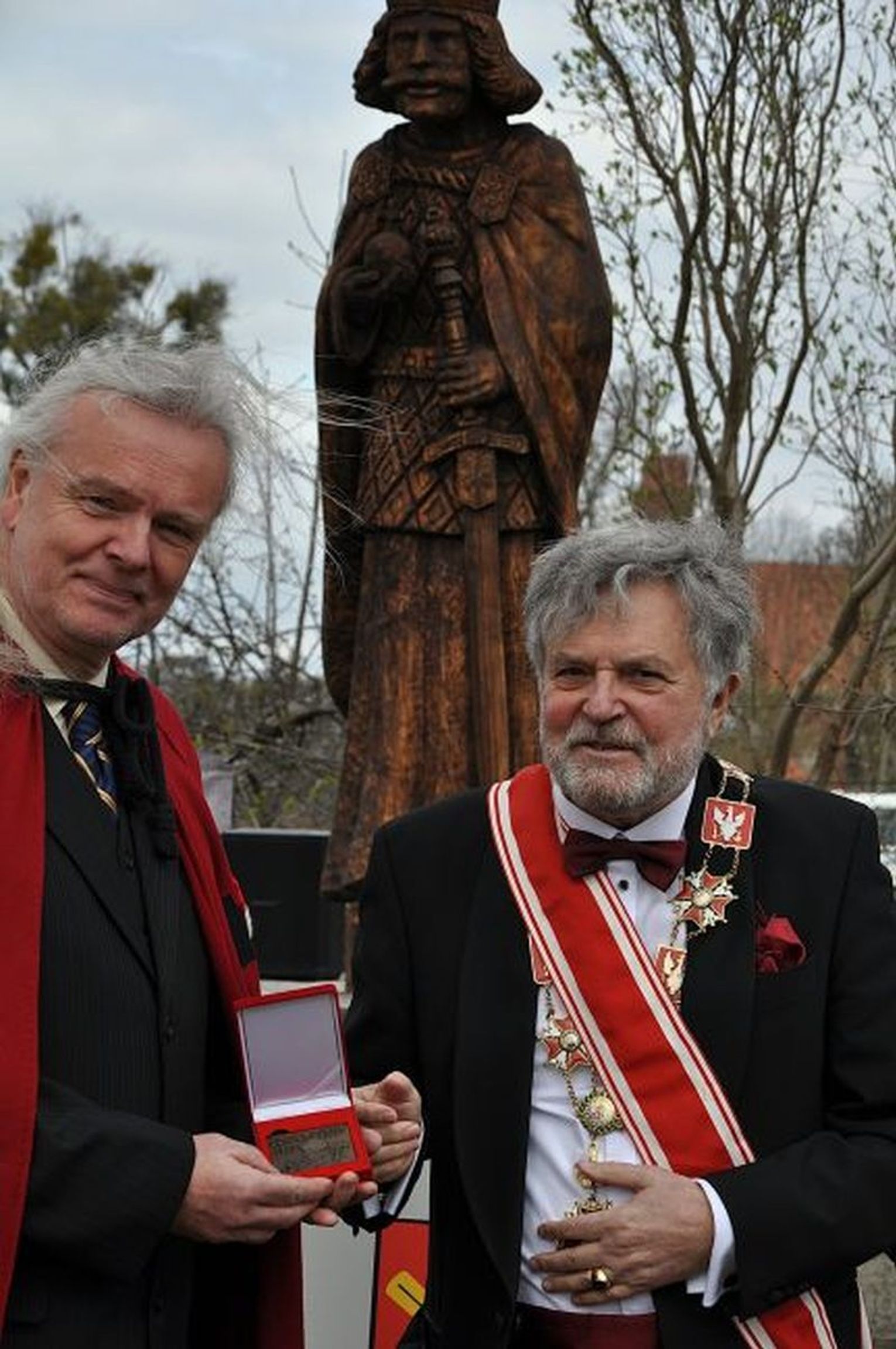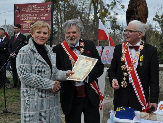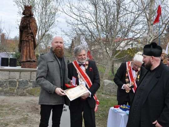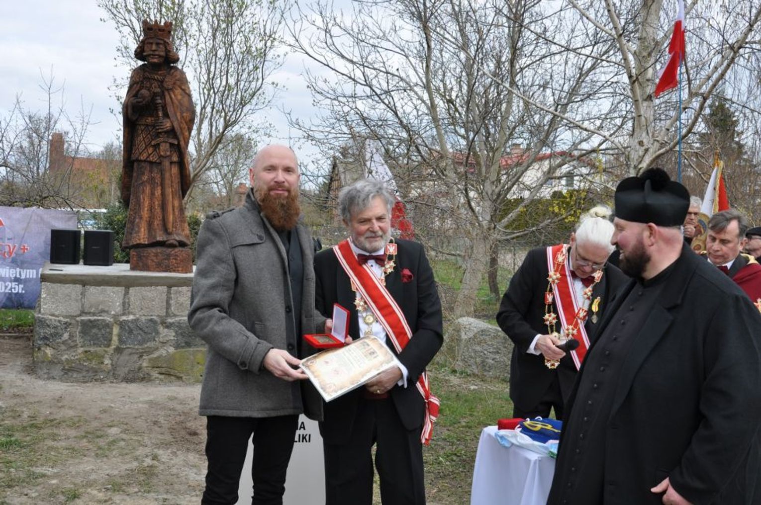 Był też czas na wręczanie dalszych wyróżnień: Okazjonalny Medal Tysiąclecia otrzymały Gmina Rychliki i Powiat Elbląski. Medal Tysiąclecia na wstążce odebrali z rąk organizatorów ks. proboszcz Piotr Łatacz, Edmund Szpanowski (rzeźbiarz, który wykonał pełnowymiarową rzeźbę Bolesława Chrobrego), Tadeusz Szczyrbak (prezes Fundacji Rodzina Rodła), Tomasz Radimonas (wspaniała oprawa muzyczna całej uroczystości) i Mariusz Krause. Medale Św. Wojciecha wręczali ks. Piotr Łatacz w asyście Piotra Steca: pani Zofii Wnuk, Annie Licznerskiej, Piotrowi Podlewskiemu, Arkadiuszowi Dzikowskiemu - Mistrzowi Bractwa Rycerzy Ziemi Sztumskiej. Certyfikat Dobra: wręcza ks. Piotr Łatacz w asyście Stefana Kukowskiego i Piotra Steca: panu Zbigniewowi Toczek - Prezesowi Polskiego Związku Katolicko - Społecznego, Jolancie Szewczun - Burmistrzowi Miasta i Gminy Dzierzgoń, Bartoszowi Mazerskiemu - Burmistrzowi Miasta i Gminy Sztum, Ludwikowi Butkiewiczowi- wicestaroście sztumskiemu oraz panu Janowi Kam. Bardzo miłą niespodziankę zrobił pan Edmund Szpanowski wręczając drewniane miniatury rzeźby Bolesława Chrobrego zasłużonym wielce Stefanowi Kukowskiemu i Piotrowi Stecowi. Poseł na Sejm RP Kacper Płażyński oddelegował asystenta Pana Mirosława Przyborowicza z przesłaniem i listem gratulacyjnym. W pełnej gali orderowej przybyli: dama Adriana Pilarska, kawalerowie Antoni Fila, Zdzisław Frątczak, Ryszard Szwoch, Bogusław Tadrowski, Bogdan Wiśniewski, Andrzej Zblewski. Dziękujemy wam, znak czasu po tych uroczystościach pozostanie po wsze czasy - pamiętające wielkość Państwa Polskiego.