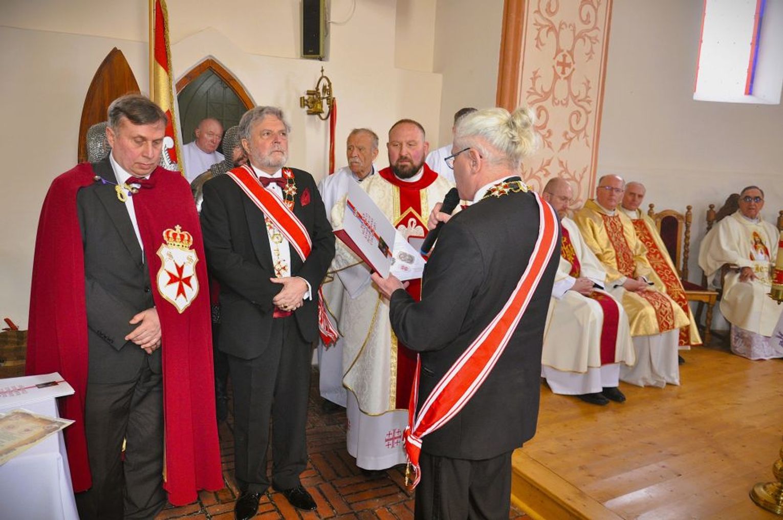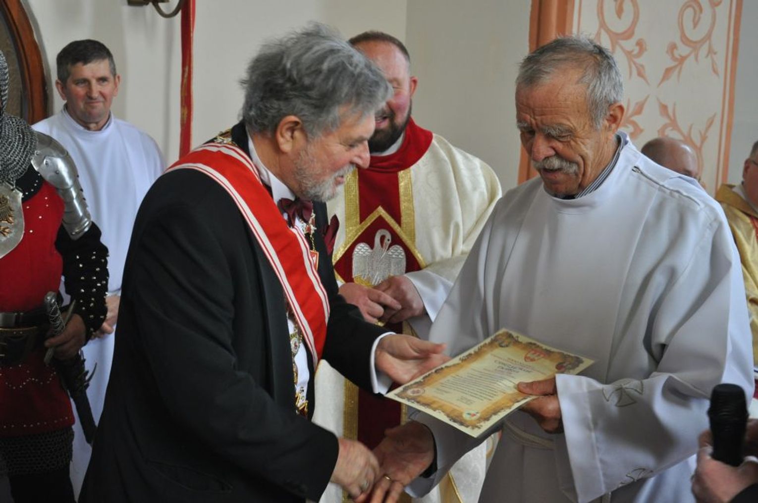 - Wszyscy byli pod wrażeniem wspaniałej, emocjonalnej homilii ks. Prałata. Gospodarz ks. Kustosz Sanktuarium Św. Wojciecha przywitał najważniejszych gości z kawalerami Orderu Św. Stanisława na czele i wielu dostojnych gości – mówi Stefan Kukowski. - Kościół był za mały i znaczna część została na zewnątrz słuchając z nagłośnienia. Były organizacje i szkoły wraz ze swymi sztandarami, nadając dostojeństwa tej uroczystości. Po mszy świętej Stefan Kukowski - Wielki Mistrz Konfederacji w asyście Piotra Steca - Przeora Pomorskiego wręczali szczególnie zasłużonym Medale Tysiąclecia: Sanktuarium św. Wojciecha w Świętym Gaju oraz prałatowi Jego Świątobliwości Marianowi Szczepińskiemu. Medal honorowy Tysiąclecia otrzymał Piotr Stec. Certyfikat Dobra otrzymał wielce zasłużony kawaler w Orderze Antoni Fila.
