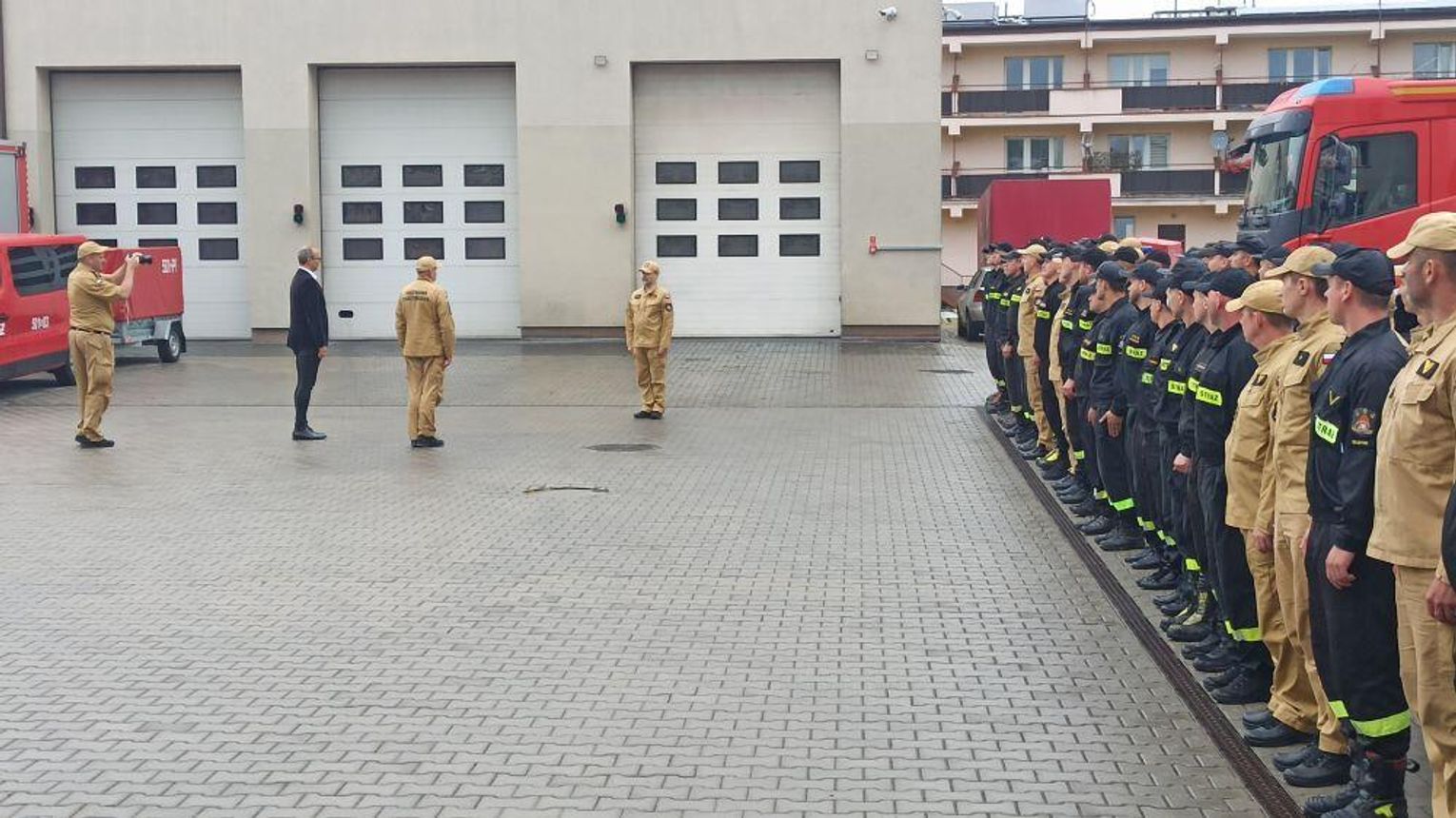 Wicewojewoda oraz Komendant Wojewódzki pożegnali też strażaków, życząc im powodzenia i udanego powrotu po wypełnieniu zadania.