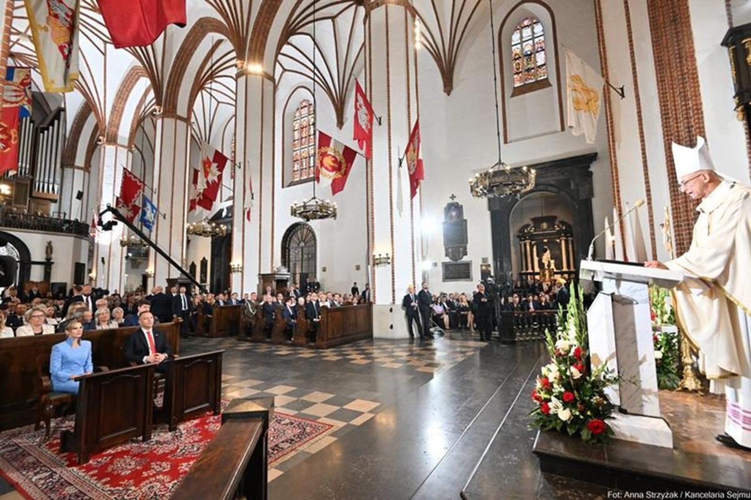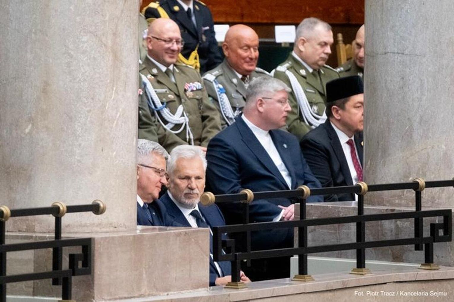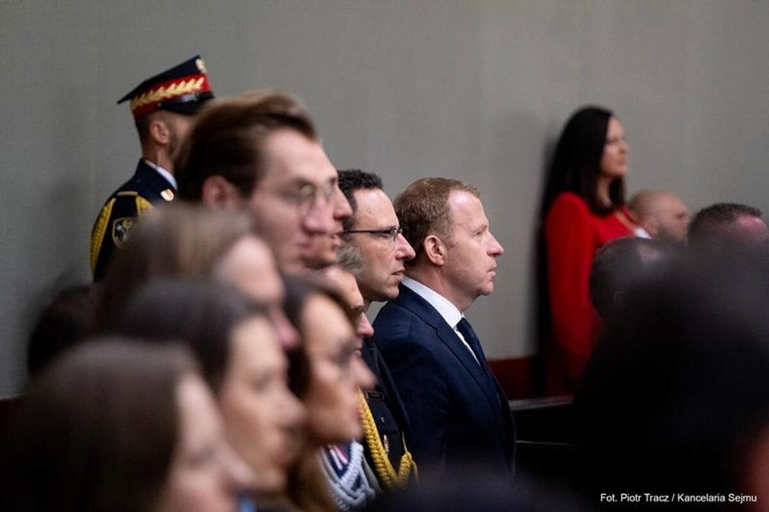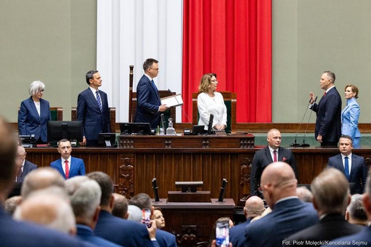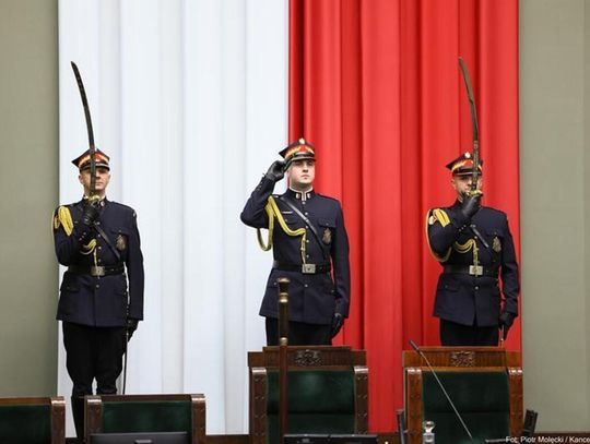 Prezydenta i pierwszą damę Martę Nawrocką powitali marszałek Sejmu Szymon Hołownia oraz marszałek Senatu Małgorzata Kidawa-Błońska. W uroczystości powitania pary prezydenckiej wzięli też udział szefowie Kancelarii Sejmu i Senatu, a uroczystą oprawę zapewniła Straż Marszałkowska.