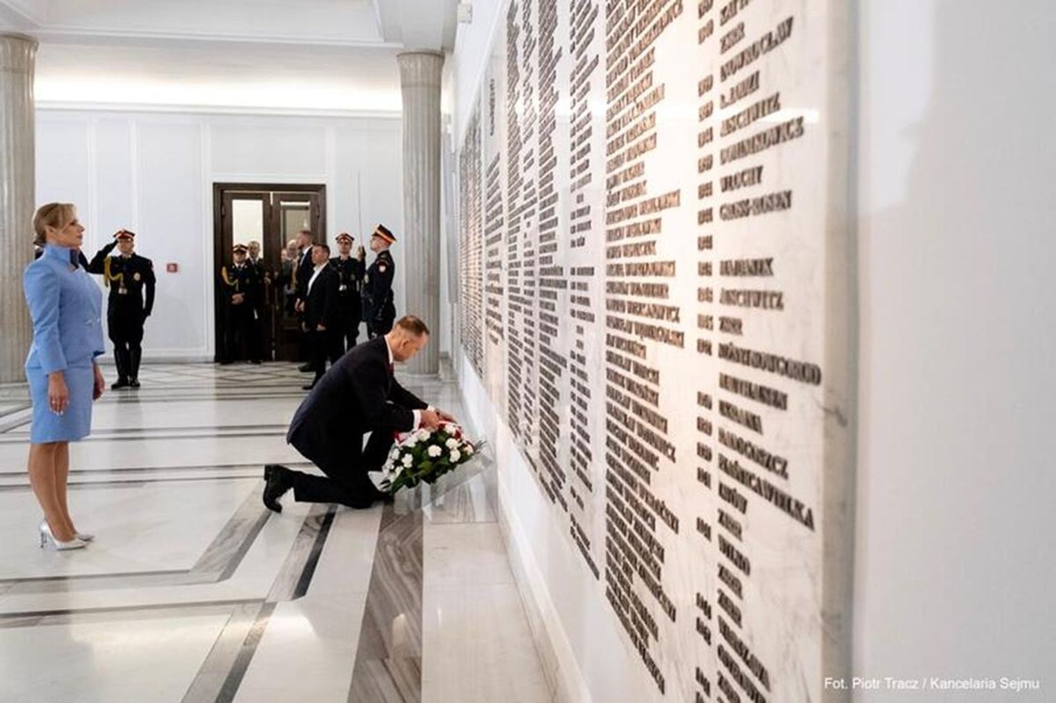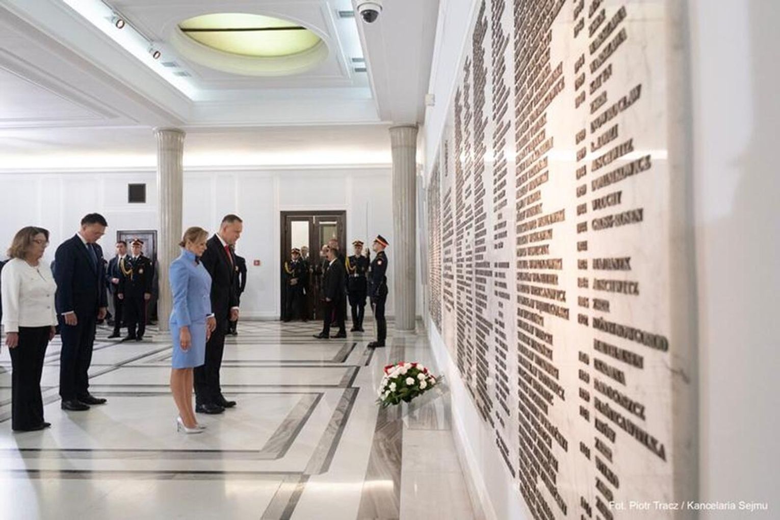 Po objęciu urzędu prezydenta Karol Nawrocki oddał hołd posłom II RP, którzy zginęli w czasie II wojny światowej, oraz parlamentarzystom, którzy zginęli w katastrofie smoleńskiej. Kwiaty złożył także przed tablicami upamiętniającymi wizytę papieża św. Jana Pawła II w parlamencie, prezydenta Lecha Kaczyńskiego i marszałka Sejmu III kadencji Macieja Płażyńskiego.