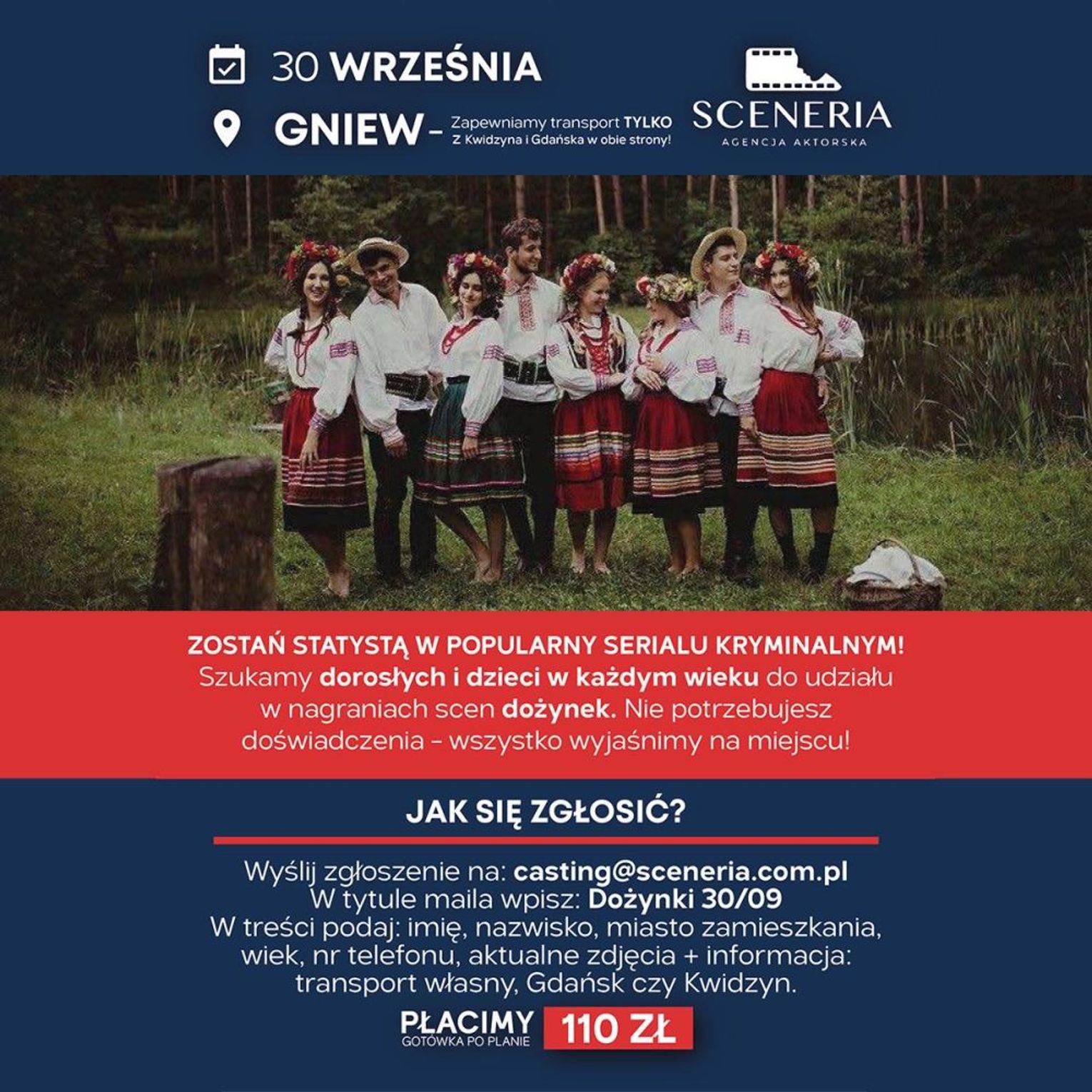*Na załączonym plakacie znajdują się dane adresowe, pod którymi można się zgłosić na statystę.
