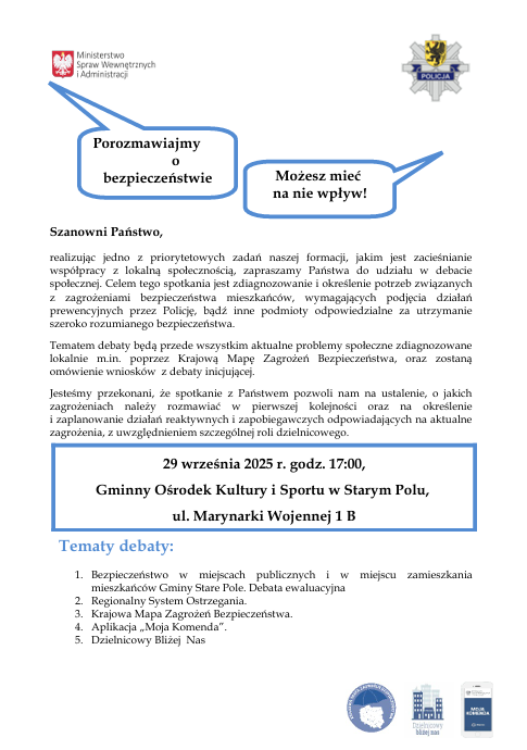 Policja serdecznie zachęca do udziału w spotkaniu wszystkich mieszkańców gminy Stare Pole.