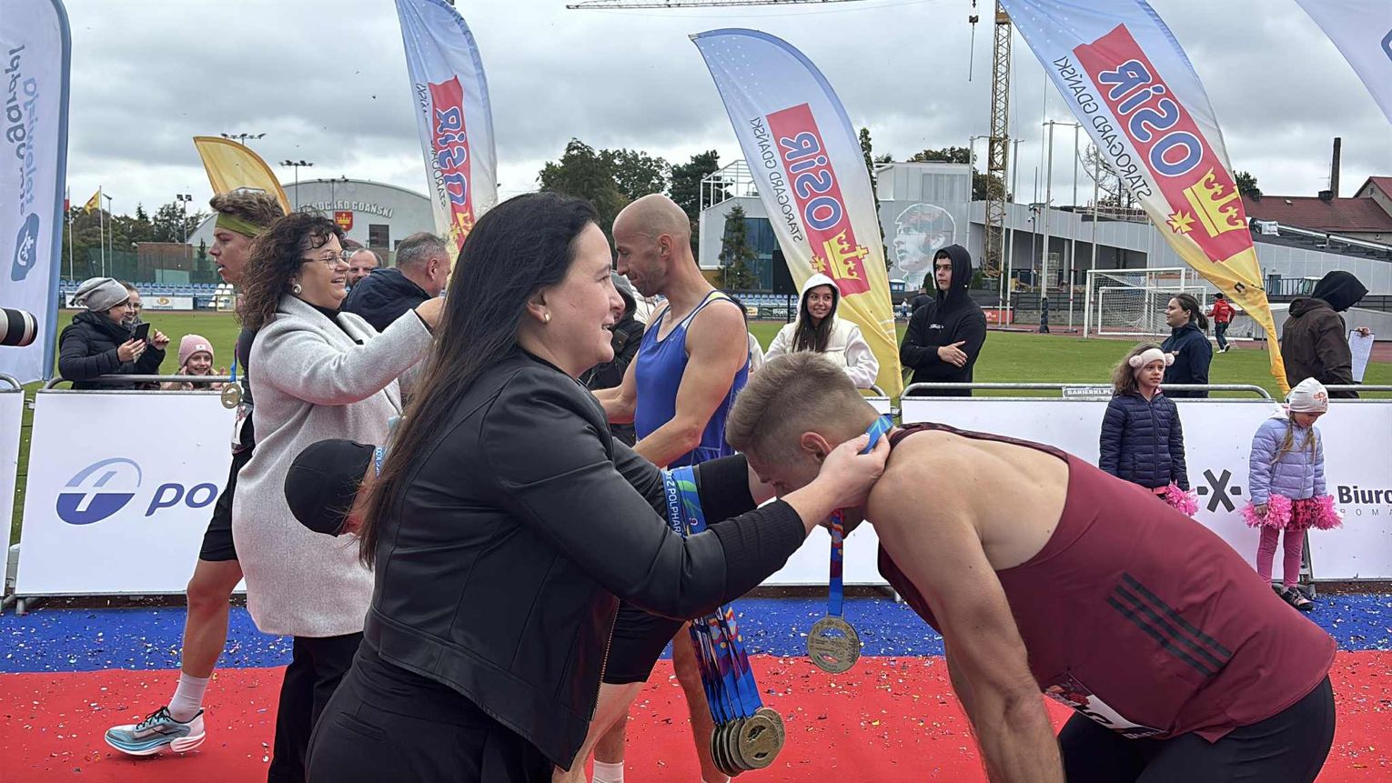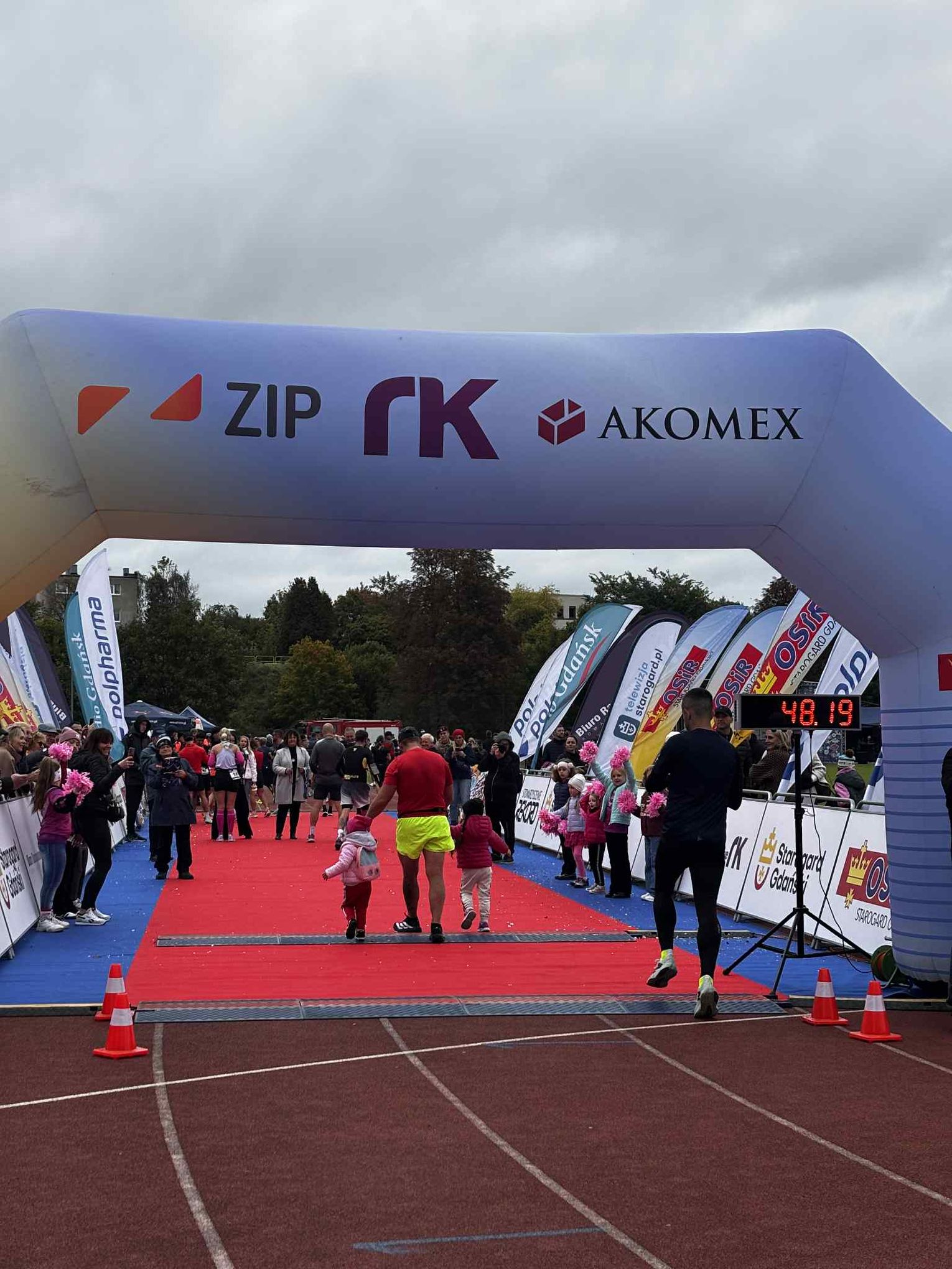 Atmosfera podczas biegu była wyjątkowa! Kibice licznie stawili się wzdłuż trasy, głośno dopingując zawodników. Dzieci machały kolorowymi pomponami i transparentami, tworząc wspaniały klimat sportowego święta. Uczestników wspierali również wolontariusze i mieszkańcy miasta, którzy z uśmiechem dodawali im sił do pokonania kolejnych kilometrów.