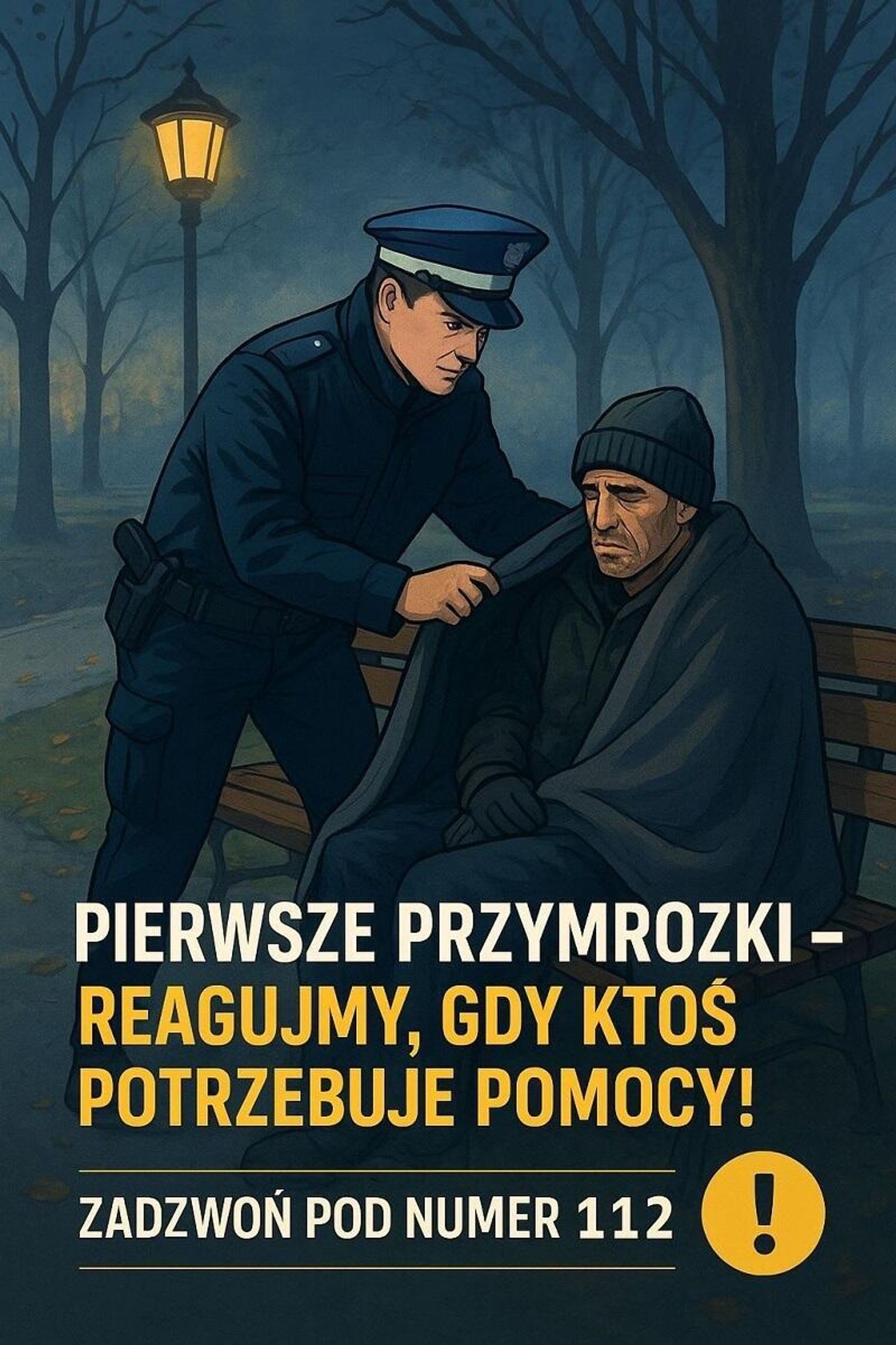 Jeśli widzisz osobę leżącą na ławce, w altanie śmietnikowej, klatce schodowej czy przystanku autobusowym – nie przechodź obojętnie! Wystarczy zadzwonić pod numer 112. Policjanci, strażnicy miejscy lub pracownicy ośrodków pomocy społecznej sprawdzą sytuację i udzielą niezbędnej pomocy. Czasem jeden telefon może uratować ludzkie życie.