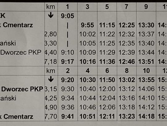 Na linii Nr 1 od godz. 9:00 do 17:00 będzie kursował jeden dodatkowy autobus.