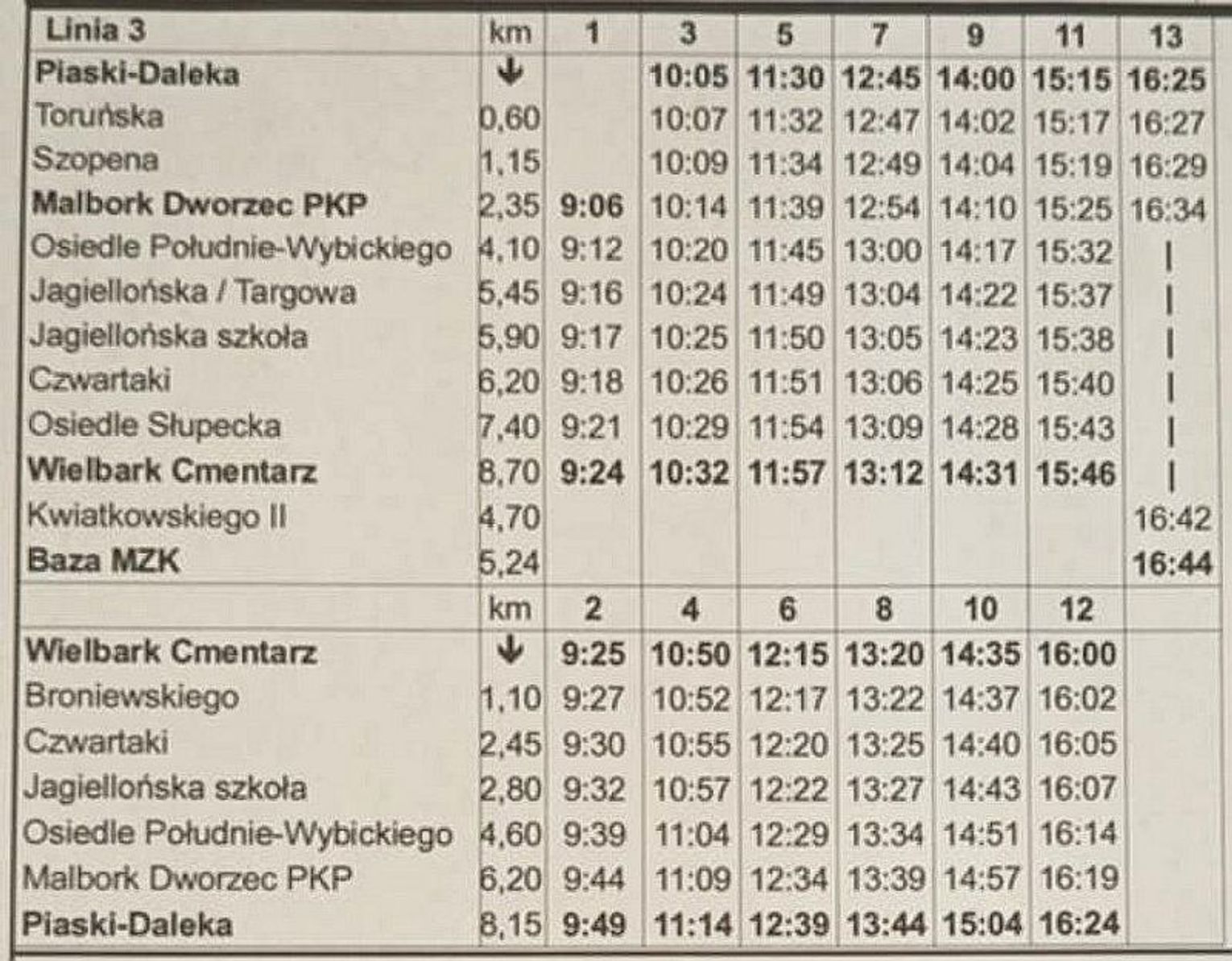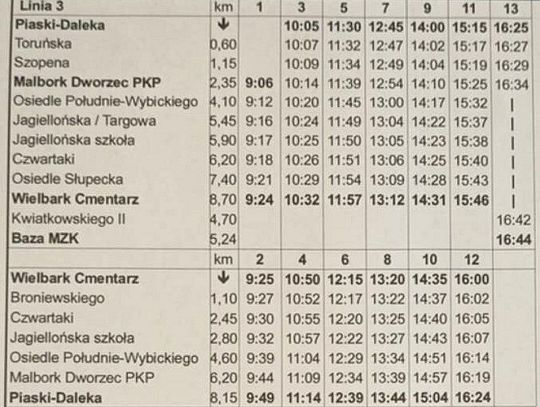 Na linii Nr 3 od godz. 9:00 do 17:00 będzie kursował jeden dodatkowy autobus.