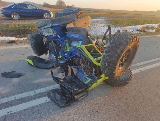 5 marca wieczorem oficer dyżurny sztumskiej Policji został powiadomiony o zdarzeniu drogowym w Tropach Sztumskich (gm. Stary Targ). Ze zgłoszenia wynikało, że poszkodowana jest jedna osoba. Na wskazany odcinek trasy natychmiast skierowano funkcjonariuszy, strażaków oraz pogotowie. Pracujący na miejscu policjanci wstępnie ustalili, że podróżujący Audi 20-latek uderzył w quada, którym kierował 48-letni mieszkaniec gminy Stary Targ. Mężczyzna trafił do szpitala, jego życiu na szczęście nie zagraża niebezpieczeństwo.