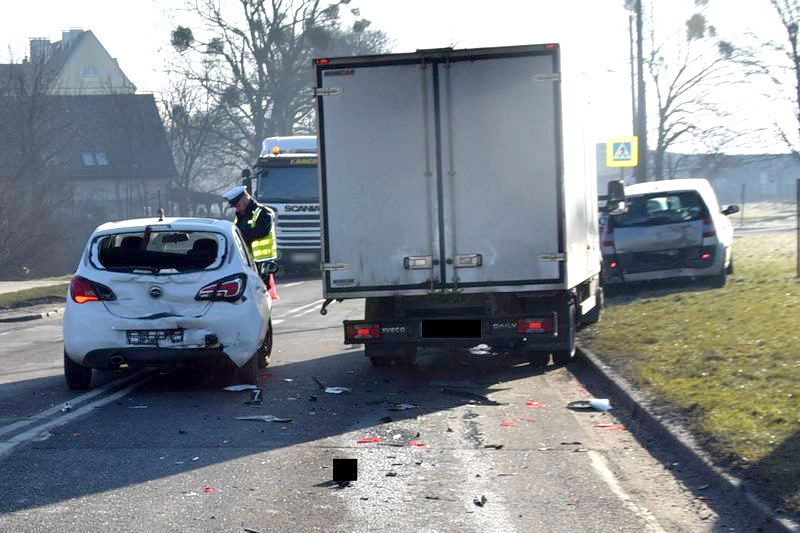 2 marca br. około godziny 7.30 dyżurny Komendy Powiatowej Policji w Malborku otrzymał zgłoszenie o zdarzeniu drogowym, z udziałem 4 aut, na ul. Aleja Wojska Polskiego w Malborku. Natychmiast na miejsce przyjechali policjanci i inne służby ratunkowe. Ze wstępnych ustaleń funkcjonariuszy pracujących na miejscu zdarzenia wynika, że kobieta kierująca skodą, jadąc w kierunku Elbląga, na wysokości sklepu „Żabka” chciała skręcić w lewo. Zatrzymała się, żeby przepuścić pojazdy nadjeżdżające z naprzeciwka. Za nią zatrzymały się renault i opel. Jadący za nimi 57-letni kierowca dostawczego iveco nie zachował ostrożności i uderzył w tył zatrzymanego opla. Siła zderzenia była na tyle duża, że „popchnięty” Opel uderzył w stojącego przed nim Renaulta, a następnie renault w skodę.