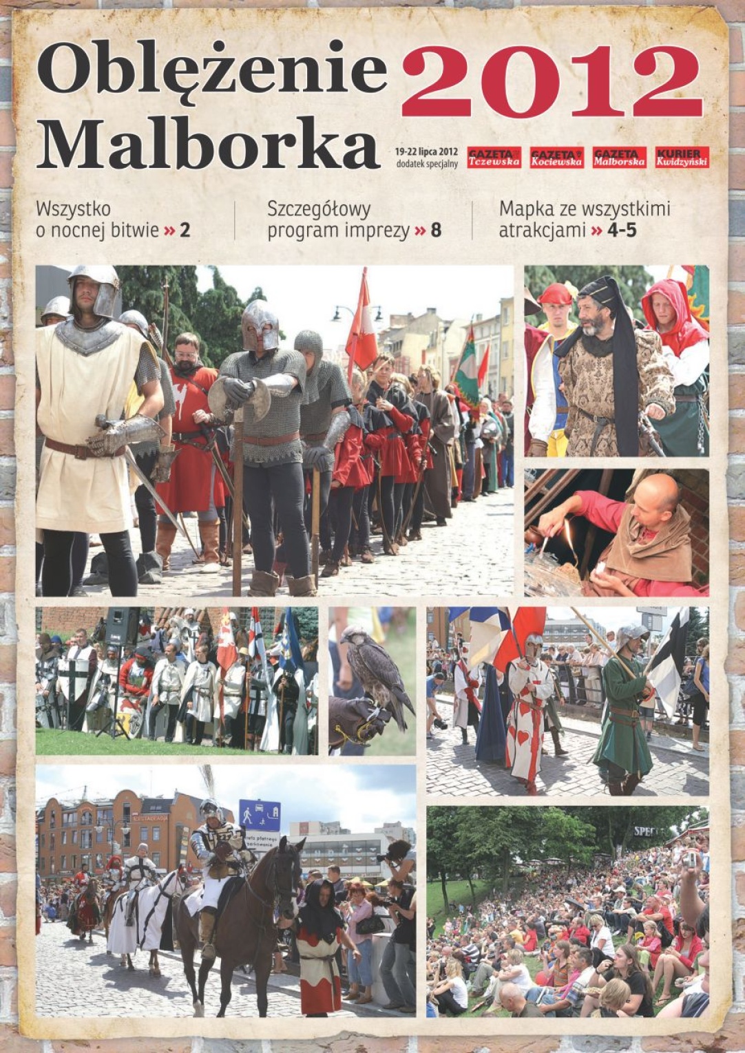 Już 18 lipca 2012 ukaże się specjalny dodatek poświęcony wydarzeniu "Oblężenie Malborka 2012" dostępny bezpłatnie wraz z Gazetą Tczewska, Gazetą Kociewską, Gazetą Malborską oraz Kurierem Kwidzynskim. Podręczny przewodnik to mapa, program oraz ciekawe teksty, które możesz mieć cały czas przy sobie.