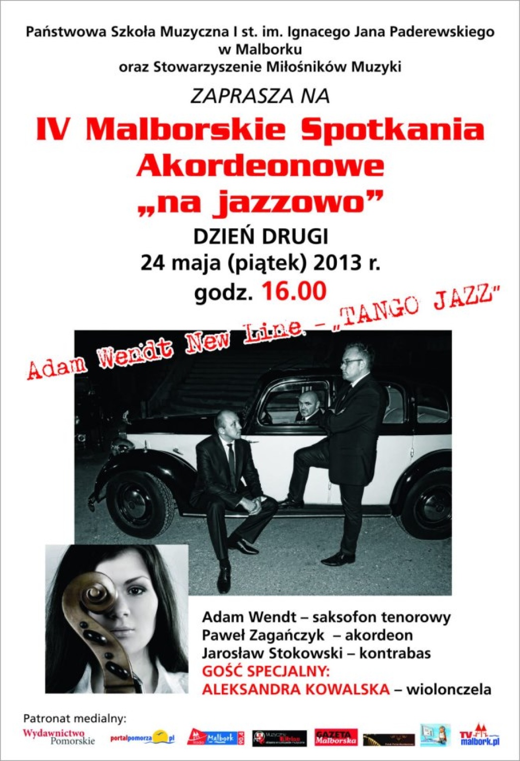 rugi z koncertów to koncert zespołu Adam Wendt New Line w skład którego wchodzą znakomity jazzowy saksofonista Adam Wendt, akordeonista Paweł Zagańczyk oraz kontrabasista Jarosław Stokowski. Połączenie akordeonu i saksofonu w muzyce jazzowej należy do niespotykanych, będzie to doskonała okazja do wysłuchania przenikających się brzmień tych instrumentów.