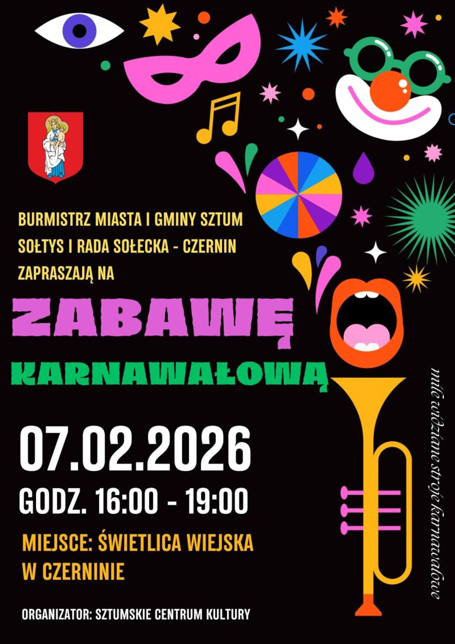 Sztumskie Centrum Kultury i gmina Sztum zapraszają na zabawy karnawałowe, które będą odbywały się w najbliższych dniach w Czerninie i Postolinie miejscowościach. Terminy kolorowych zabaw podajemy poniżej.