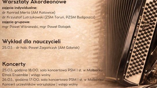 Malborskie Spotkania Akordeonowe to cykl spotkań z muzyką i pedagogiką muzyki, który odbędzie się w dniach 25-26 marca br.