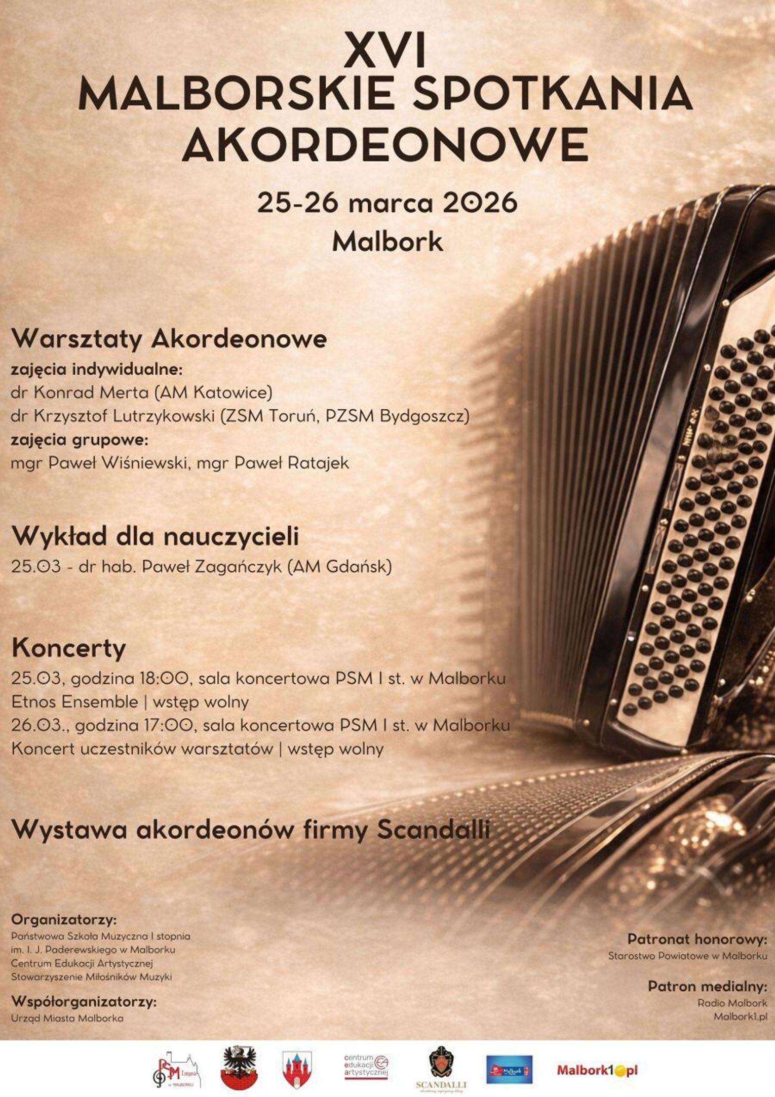 XVI Malborskie Spotkania Akordeonowe. Koncerty, warsztaty dla uczniów oraz wykłady dla nauczycieli