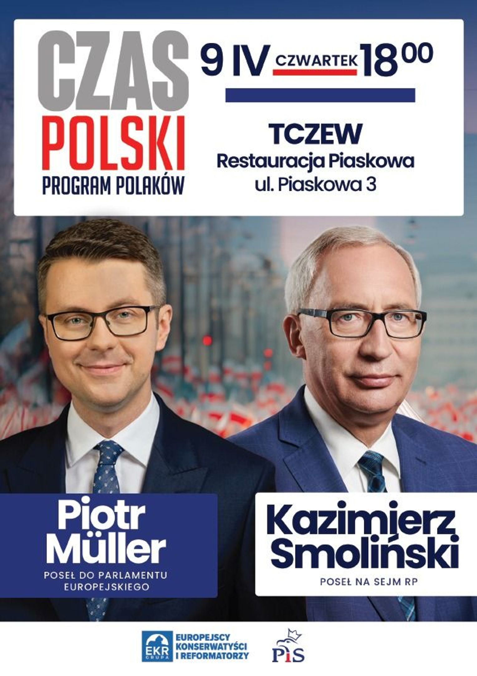 Poseł Kazimierz Smoliński i europoseł Piotra Müllera zapraszają na debatę polityczną o Polsce w Tczewie w ramach inicjatywy „Czas Polski. Program Polaków”.